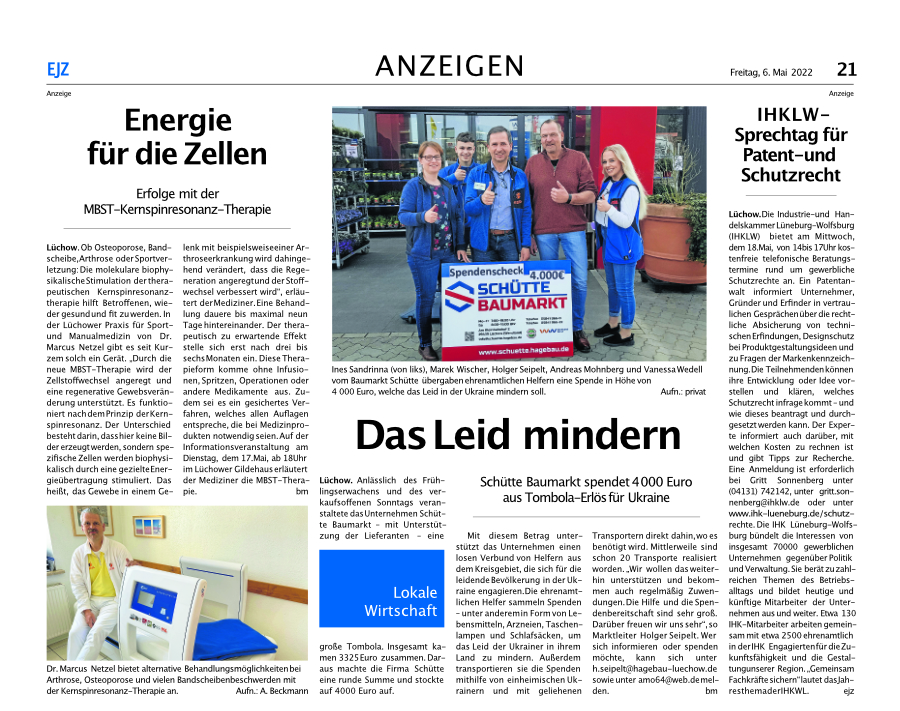 Die EJZ berichtet über die Energie für die Zellen: