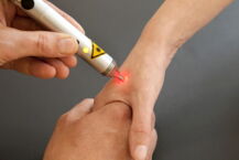 Bei der Laserakupunktur wird die Nadel, mit der der Akupunkturpunkt sonst gestochen wird, durch einen Laserlichtimpuls ersetzt.
